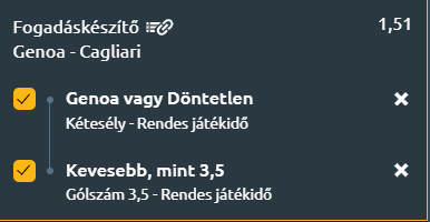 Tipp: 1X+ kevesebb, mint 3,5 gól a meccsen