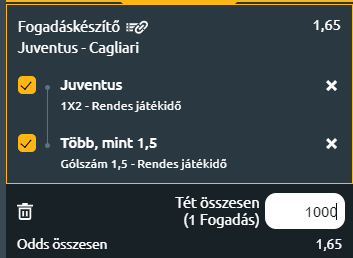 Tipp: Juventus nyer + több mint 1,5 gól a mérkőzésen