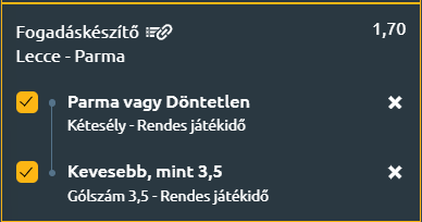 - Mire számíthatunk mindezek alapján? Egy nagyon szoros, kevés gólt hozó mérkőzésre van kilátás, ahol a hazaiak gyenge hazai formája és a kulcsemberek hiánya miatt Parma idegenbeli stabilitása és Pellegrino gólerőssége döntő lehet. Összefoglalva az X2 és a kevesebb, mint 3,5 gól opció együtt jó választásnak tűnik!