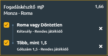 Egy Single Value Tipp következik, vagyis a sportfogadásban egy olyan értékelhető szorzó, amely single játékba küldés esetén is értéket hordoz magában! A Roma a hétközi csalódást keltő európai vereség után vasárnap este Monzába látogat, és nyerni akar!