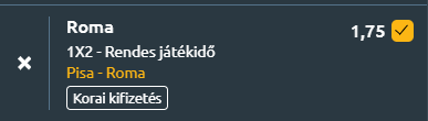 Egy Single Value Tipp következik, vagyis a sportfogadásban egy olyan értékelhető szorzó, amely single játékba küldés esetén is értéket hordoz magában! A Serie A 2. fordulójában a döntetlennel kezdő újonc Pisa, a győzelemmel rajtoló AS Romát fogadja. Pisában 34 év után rendeznek élvonalbeli futballmeccset, igazi ünnepi hangulat és egy felspannolt hazai gárda várja a Farkasokat. Vajon elég lesz mindez egy pontrabláshoz, vagy egy vaskos meglepetéshez?