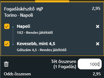 Tipp: Napoli nyer + kevesebb mint 4,5 gól a mérkőzésen