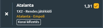 Ezek az ötletek kiválóan alkalmasak arra, hogy egy kétmeccses duplázóban az egyik tagot adják. Az odds alacsonyabb, viszont ezzel párhuzamosan a kockázat mértéke is csökken. Atalanta – Empoli meccset rendeznek a Serie A 17. fordulójában. Gasperini csapata szárnyal a tabella első helyén, míg az Empoli idegenben már többször képes volt meglepetést okozni. Ma is képes lesz?