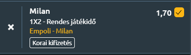 Ezek az ötletek kiválóan alkalmasak arra, hogy egy kétmeccses duplázóban az egyik tagot adják. Az odds alacsonyabb, viszont ezzel párhuzamosan a kockázat mértéke is csökken. A Milan bejutott az Olasz Kupa elődöntőjébe, és továbbra is versenyben vannak a Bajnokok Ligájában, de a bajnokságban nyolcadik helyen állnak, és sürgősen javítaniuk kell a formájukon. Eközben az Empoli tovább csúszik lefelé a tabellán, és egyre nagyobb bajba kerül a kiesés elleni harcban.
