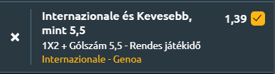 Tipp: Inter nyer és kevesebb, mint 5,5 gól a mérkőzésen