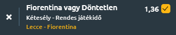 Ezek az ötletek kiválóan alkalmasak arra, hogy egy kétmeccses duplázóban az egyik tagot adják. Az odds alacsonyabb, viszont ezzel párhuzamosan a kockázat mértéke is csökken. A Fiorentina legutóbb az AC Milan ellen nyert, míg a Lecce zsinórban második vereségével kényelmetlenül közel került a Serie A kieső zónájához.