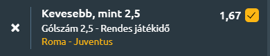 Ezek az ötletek kiválóan alkalmasak arra, hogy egy kétmeccses duplázóban az egyik tagot adják. Az odds alacsonyabb, viszont ezzel párhuzamosan a kockázat mértéke is csökken. A két ősi rivális az Olimpicóban feszül egymásnak, mindössze három pont különbséggel. A formák teljesen ellentétesek, a feltámadó Roma sorozatban nyolcadik győzelmét célozza, míg a Juventus új edzője alatt próbálja összerakni szétesett csapatát.