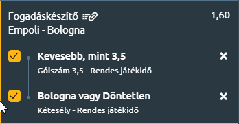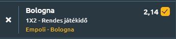 - Na, ma Empoli - Bologna, 17. a 4. ellen. Jó formában vannak a vendégek, a pillanatnyi formát tekintve csak az Inter jobb náluk. A Bologna 2001 óta nem nyert idegenben az Empoli ellen, de véleményem szerint ma fognak.