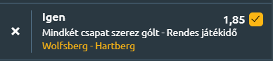 - A Hartberg szintén remekül teljesít a kupában a négy győzelméhez mindössze egy döntetlen társul, vereség nélkül állnak az élen a sorozatban. A csapat gólátlaga 4,2(!) meccsenként, és mindössze 0,2 gólt kaptak mérkőzésenként, ezek alapján a támadójátékuk kifejezetten kiemelkedő, a védekezésük pedig félelmetesen stabil. A legutóbbi öt meccsük kissé visszafogottabb formát mutat – két győzelem mellett két döntetlen és egy vereség szerepel , és az utolsó találkozón 1–1-es döntetlent játszottak a Grazer AK ellen. A legutóbbi öt egymás elleni meccs alapján némileg fölényben vannak Wolfsbergerrel szemben. Bár a két csapat jelenlegi kupaformája alapján a Hartberg mutat valamivel kimagaslóbb számokat, Wolfsberger lendülete, hazai pályája, valamint a legutóbbi egymás elleni sima győzelme kiegyenlíti az erőviszonyokat. Ennek fényében egy izgalmas, nyílt mérkőzésre számíthatunk, ahol az aktuális forma és a hazai pálya előnye alapján Wolfsberger kicsivel esélyesebb lehet a győzelemre, de mindkét csapat betalálhat!