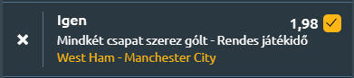 - A West Ham a kilencedik helyen áll a WSL-ben, de hazai pályán kifejezetten erős teljesítményt nyújtott az utóbbi időben, az elmúlt öt otthoni meccséből négyet is megnyert. Legutóbb vereséget szenvedtek az Arsenaltól, pedig kétszer is kétgólos előnyben voltak, mégis 4-3-ra alulmaradtak. A West Ham tehát képes gólokat szerezni, de a védekezése hajlamos a hibázásra! A Manchester City jó formában érkezik, zsinórban négy győzelemnél járnak, és ha nyernek, felléphetnek a Bajnokok Ligája-helyekre. A várható eredmény egy szoros Manchester City-siker, mivel a vendégek magasabb minőséget képviselnek, de a West Ham hazai formája-, és gólerős játéka miatt nem lesz könnyű dolguk. A West Ham támadásban veszélyes lehet, ahogy az Arsenal ellen is bizonyította, míg a City stabil védekezése ellenére is hajlamos lehet egy-egy találatra, főleg idegenben, mindennek a következménye a gólváltás!