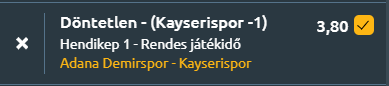 Tipp: Döntetlen 1-0-ról (Egy góllal nyer a Kayserispor)