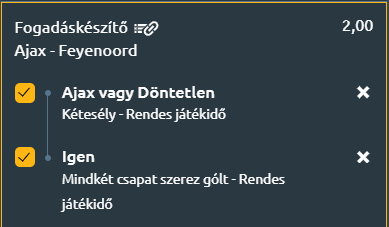 - Mire számíthatunk a meccsen? Egy igazi derbi lesz ez, elszánt rohamokkal, holland támadófocival enyhe hazai mezőnyfölénnyel. A Feyenoord várhatóan gólt szerez, de a hazai pálya és az Ajax jó formája miatt a hazai győzelem az esélyesebb. A derbijelleg miatt a döntetlent is mindenképp figyelembe kell venni.