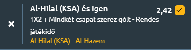 Tipp: Al-Hilal nyer és mindkét csapat szerez gólt