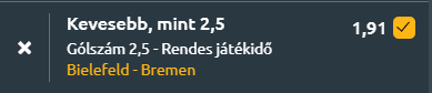 Tipp: Kevesebb, mint 2,5 gól a mérkőzésen
