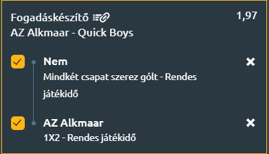 Tipp: AZ nyer és nem szerez mindkét csapat gólt a mérkőzésen