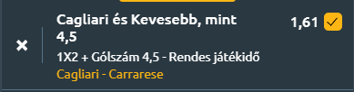 Egy Single Value Tipp következik, vagyis a sportfogadásban egy olyan értékelhető szorzó, amely single játékba küldés esetén is értéket hordoz magában! A Cagliari a Serie B-ben szereplő Carrarese csapatát fogadja a Coppa Italia első fordulójában.