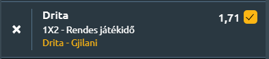 - Ma a listavezető Drita hazai pályán fogadja a negyedik helyen álló Gjilanit. A statisztikák alapján a hazaiak az esélyesebbek. A Drita kimagasló szezonon van túl, hiszen 15 győzelmével és mindössze három vereségével vezeti a bajnokságot, meccsenként átlagosan 1,71 gólt szerezve, míg védekezésben is stabil, hiszen csak 0,75 gólt kap átlagosan. A Gjilani ezzel szemben hullámzóbb teljesítményt nyújtott, 9 győzelemmel és 8 vereséggel a negyedik helyen áll, és bár támadásban nem rossz (1,36 gól/meccs), védekezése sebezhetőbb (1,32 kapott gól/meccs). Az elmúlt öt meccsen a Drita jobb formát mutatott (három győzelem, egy döntetlen, egy vereség), míg a Gjilani valamivel visszafogottabb teljesítményt nyújtott (két győzelem, két döntetlen, egy vereség). Az egymás elleni mérleg kiegyenlített, hiszen az utóbbi öt találkozóból a Drita csak egyszer nyert, míg a Gjilani kétszer diadalmaskodott, és kétszer döntetlen született.