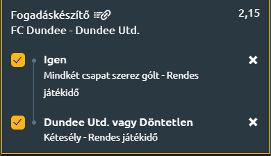 Egy Single Value Tipp következik, vagyis a sportfogadásban egy olyan értékelhető szorzó, amely single játékba küldés esetén is értéket hordoz magában! A Dundee-derbi Skócia egyik legnagyobb múltra visszatekintő városi derbije. Ma a skót FA Kupában a bajnoki tabellán hetedik helyen álló Dundee hazai pályán fogadja a harmadik helyezett Dundee Unitedet.