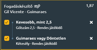 - Mire következtethetünk mindezek alapján? A mérkőzés esélyese a jelenlegi forma alapján egyértelműen a Vitoria de Guimaraes. A vendégek szervezetten védekeznek, kiegyensúlyozottabbak, és támadásban is hatékonyabbak a házigazdáknál. Bár idegenben nem verhetetlenek, éppen ezért a döntetlent is figyelembe kell venni, valamint a vendégek koncentrált védekezése miatt az under 2,5 gól a valószínű!