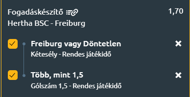 - Mire számíthatunk mindezek alapján? A Hertha gólerős, támadásban kifejezetten jó csapat, míg a Freiburg elsőligás és szintén szívesen alkalmaz támadó stratégiát. Az osztálykülönbség nem áll fenn a mai mérkőzésen, hiszen a Hertha az egyik feljutásra esélyes gárda és otthon játszik! Ennek ellenére a vendéggárda játékosállománya mindenképpen erősebb és ha nem rohannak fejjel a falnak Berlinben, hanem okosan a kivárásra játszanak, akkor meglesz a továbbjutás. A tipp X2 és lesz minimum két gól a meccsen.