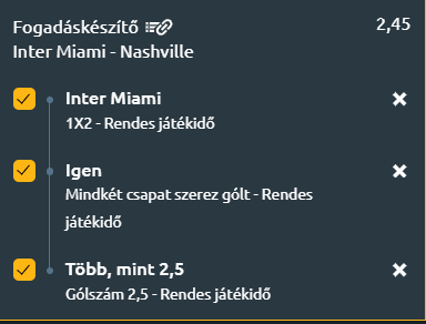 Tipp: Inter Miami nyer + mindkét csapat szerez gólt + több, mint 2,5 gól a meccsen