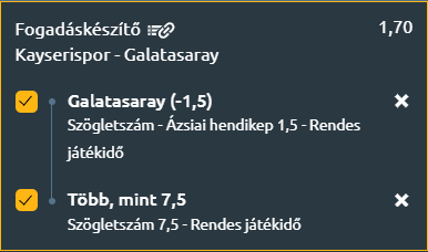 Tipp: Galatasaray -1,5 gól hendikep nyer + több, mint 7,5 szöglet a meccsen