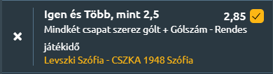 - A Levszki Szófia szezonja eddig erős volt, de az utóbbi időben gyengélkedik, hiszen legutóbbi öt meccsén egyszer sem tudott győzni, négyszer döntetlent játszott és egyszer kikapott. Ennek ellenére támadásban megbízhatóak, hiszen átlagosan 1.92 gólt szereznek meccsenként, miközben 0.88-at kapnak. A sorsolás szeszélye folytán ma egy remek lehetőséget kaptak, hogy visszatérjenek a győztes útra, hiszen a városi rivális jelentősen le van maradva tőlük, igaz figyelniük kell, mert a CSKA 1948 csapata nincs rossz formában! A vendégegyüttes az utóbbi öt meccséből négyet megnyert, és csak egyszer kapott ki, miközben 2.4-es gólátlagot produkált. Bár a Levski az előző egymás elleni mérkőzésen idegenben 4-2-re nyerni tudott, a két csapat múltbeli összecsapásai kiegyenlítettek voltak, hiszen az utóbbi öt meccsükből kettőt a CSKA nyert meg, kettő döntetlennel végződött, és egyet a Levszki húzott be. Mindezek alapján egy nyílt, sok gólt hozó mérkőzésre lehet számítani, ahol a Levszki hazai pálya előnyével próbálja megszakítani gyenge sorozatát, míg a CSKA 1948 folytatná remek formáját.