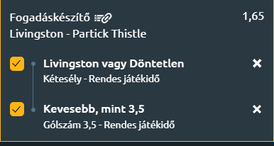 - Mire számíthatunk mindezek alapján? Mivel a Partick Thistle várhatóan agresszíven fog támadni, a Livingston előtt adódhatnak kontralehetőségek és üres területek, amelyeket rutinosan ki tudnak majd használni. Bár a Thistle képes helyzetek kialakítására, a hatékonyságuk és idegenbeli mérlegük alapján nem könnyű elképzelni, hogy három gólt is szerezzenek anélkül, hogy gólt kapnának. Szoros meccs várható, ahol a hazai csapat próbálja majd foggal-körömmel őrizni az előnyét. Nem kap ki a Livingston és nem lesz több gól, mint három!