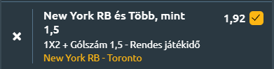 Tipp: New York RB nyer és több, mint 1,5 gól a mérkőzésen