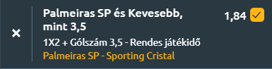 Egy Single Value Tipp következik, vagyis a sportfogadásban egy olyan értékelhető szorzó, amely single játékba küldés esetén is értéket hordoz magában! A Copa Libertadores csoportkörének utolsó fordulójában a már biztos továbbjutó Palmeiras fogadja a perui Sporting Cristal csapatát São Paulóban. Míg a brazilok a veretlenségüket és hazai rekordjukat szeretnék megőrizni, a vendégeknek csak egy csoda segíthetne a kiesés elkerülésében.