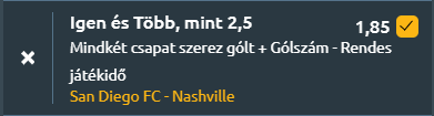 Egy Single Value Tipp következik, vagyis a sportfogadásban egy olyan értékelhető szorzó, amely single játékba küldés esetén is értéket hordoz magában! Két MLS bajnoki címre is esélyes csapat csap össze szombaton a kaliforniai Snapdragon Stadionban, ahol a Nyugati Konferencia éllovasa, a San Diego FC fogadja a remek formában érkező Nashville SC-t. Gólparádé van kilátásban!