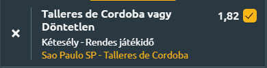 Egy Single Value Tipp következik, vagyis a sportfogadásban egy olyan értékelhető szorzó, amely single játékba küldés esetén is értéket hordoz magában! A Copa Libertadores csoportkörének utolsó fordulójában a Sao Paulo hazai körülmények között fogadja a Talleres Cordobát. A házigazdák már biztos továbbjutók és csoportelsők, míg az argentinok a harmadik hely megtartásáért harcolnak, amely a Copa Sudamericanába való átjutást jelentené. A tét tehát egyoldalú, de a vendégek motiváltabbak, a brazilok pedig veretlenségüket igyekeznek megőrizni hazai pályán.