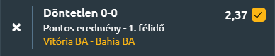 Egy Single Value Tipp következik, vagyis a sportfogadásban egy olyan értékelhető szorzó, amely single játékba küldés esetén is értéket hordoz magában! A a kiesés elől menekülő Vitoria a Bahia ellen lép pályára a Brasileiro 28. fordulójában. A két csapat egymás elleni ütközései hagyományosan kiélezettek, az elmúlt években több piros lapot és heves összecsapást hoztak, így a szurkolók ismét izgalmas, feszült mérkőzésre számíthatnak.