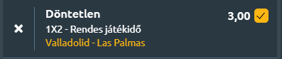 - Mire számíthatunk mindezek alapján? A két legstabilabb védekezésű csapat összecsapása várhatóan kevés gólt hoz majd. A Valladolid hazai pályán szeretné megtörni a Las Palmas elleni rossz sorozatát, míg a vendégek célja veretlenségi szériájuk megőrzése és feljutási esélyeik erősítése. Mindezek alapján reális esély mutatkozik egy kiegyenlített, taktikus mérkőzésre, amely végül döntetlennel zárulhat.