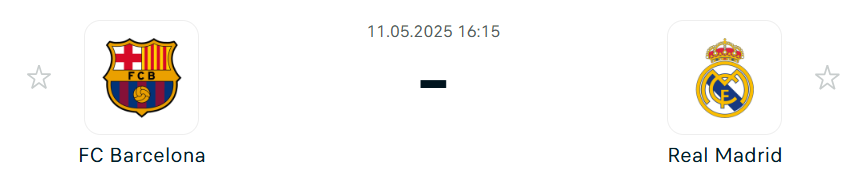 - Carlo Ancelotti együttese számára ez a mérkőzés sorsdöntő lehet, hiszen egy vereséggel gyakorlatilag elszállna a bajnoki remény. A királyi gárda egy viszonylag nyugodt hetet tudhat maga mögött, az utolsó meccsükön a Celta Vigót verték 3–2-re, és már négy bajnoki győzelemnél tartanak sorozatban, ezek közül háromszor kapott gól nélkül zártak. Ugyanakkor a szezon eddig csalódást keltő, hiszen kiestek a BL-ből az Arsenal ellen, a Király-kupa döntőjét pedig épp a Barcelona ellen veszítették el. A nyáron edzőváltás is várható, Xabi Alonso lehet Ancelotti utódja. A keret jelenleg erősen tartalékos, Rudiger, Mendy, Alaba, Carvajal, Militao és Camavinga is sérült, így Valverde valószínűleg a védelem jobb oldalán játszik majd, míg középen Modric és Ceballos kaphat szerepet. Rodrygo betegsége után visszatérhet, de Arda Güler kezdése is esélyes legutóbbi kiváló teljesítménye miatt. Elöl Mbappé és Vinícius Junior jelentik a fő fegyvert, utóbbi három vereséget szenvedett idén a Barcával szemben, most törné meg ezt a sorozatot.