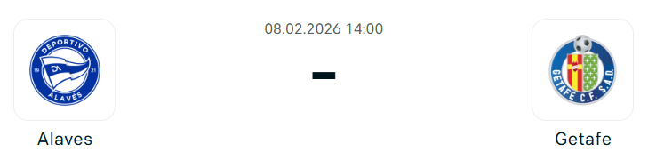 - Az Alaves a Copa del Reyből kiesett a negyeddöntőben, de a bajnokságban legutóbb két győzelmet arattak a Real Betis és az Espanyol ellen, így jelenleg a 10. helyen állnak 25 ponttal, csupán három ponttal lemaradva a nyolcadik helyezett Real Sociedad mögött. Hazai pályán eddig 11 mérkőzésből 18 pontot gyűjtöttek, bár a Getafe elleni összecsapások történetében csak egyszer tudtak nyerni az elmúlt 13 találkozóból. Ville Koski és Carlos Protesoni sérülés miatt hiányzik, a többi játékos rendben van.