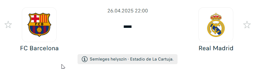 Az Estadio de La Cartuja ad otthont a szezon egyik legjobban várt összecsapásának, ahol a két spanyol óriás, a Barcelona és a Real Madrid csap össze a Copa del Rey döntőjében. A katalánok a 32. kupagyőzelmükre hajtanak, míg a fővárosiak 21. alkalommal emelnék magasba a trófeát.
