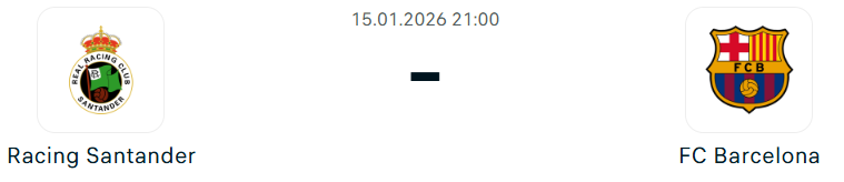 - A Barcelona rendkívüli sorozattal érkezik Santanderbe, hiszen zsinórban tíz győzelemnél tart, ami 2016 óta nem fordult elő a klub történetében. A katalánok a 2025-ös év végén hét egymást követő mérkőzést nyertek meg, majd az új esztendőt az Espanyol elleni 2–0-s idegenbeli sikerrel kezdték, ezt követően pedig Szaúd-Arábiában megvédték a Spanyol Szuperkupa-címüket. Az Athletic Clubot 5–0-ra ütötték ki az elődöntőben, majd a döntőben 3–2-re győzték le a Real Madridot, Raphinha főszereplésével, aki két gólt szerzett, és a sorozatban összesen négy találattal zárt. A Barcelona a Copa del Reyben a 32 között csatlakozott, ahol kemény munkával 2–0-ra verte a harmadosztályú Guadalajarát, és most szeretné elkerülni, hogy a 2021–22-es idény óta először már a nyolcaddöntőben búcsúzzon. A vendégek ugyanakkor több hiányzóval is számolnak, Andreas Christensen és Gavi sérülés miatt nem bevethető, Frenkie de Jong pedig eltiltás miatt marad ki.