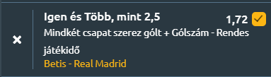 - Nehéz mérkőzésre van kilátás, különösen annak fényében, hogy a Real Madrid 2021 augusztusa óta nem tudott nyerni Sevillában a Betis ellen. Mindkét gárda motivált lesz, a hazaiak presztízsből is nekimennek a Realnak és képesek is lesznek betalálni! A Madrid pedig bizonyosan lő majd gólt, így a meccs könnyen gólparádévá alakulhat!