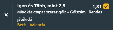 - A találkozó tét nélküli, ám éppen emiatt lehet nyitottabb és gólgazdag. A Betis pihenteti legfontosabb játékosait, miközben szabadabban, nyomás nélkül játszhat otthon, és szeretnék pozitívan lezárni az idényt. A Valencia számára szintén nincs veszítenivaló, viszont a dobogósokat is megszorongató tavaszi formájuk alapján képesek lehetnek veszélyeztetni egy tartalékos Betist. A Betis hazai pályán gyakran támadóbb felfogású, míg a Valencia szintén képes kihasználni a védekezésben gyengülő riválist. Emellett az őszi 4-2-es meccs is azt mutatja, hogy a két csapat egymás ellen nem zárkózik be. Összességében gólokra és jó játékra lehet számítani, a tippem mindkét csapat szerez gólt és több, mint 2,5 gól a meccsen!