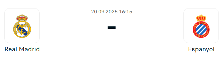 - Xabi Alonso irányításával a Real Madrid tökéletes rajtot vett, hiszen eddigi mind az öt tétmeccsét megnyerte. A bajnokságban az Osasuna, a Real Oviedo, a Mallorca és a Real Sociedad legyőzésével 12 pontot gyűjtöttek, így kétpontos előnnyel vezetik a tabellát Barcelona előtt. A legutóbbi bajnokin 2–1-re múlták felül a Sociedadot, majd a Bajnokok Ligájában szintén 2–1-re győztek a Marseille ellen. A támadósor húzóembere Kylian Mbappé, aki öt meccsen hat gólt szerzett, és immár 50 találatnál jár madridi pályafutása alatt. Alonso kezdi megtalálni a csapatkohéziót, a Real egyre masszívabb játékot mutat. Sok a maródi a keretben, Alexander-Arnold, Endrick, Mendy és Rüdiger sérült, míg Dean Huijsen eltiltott. Vinícius Júnior viszont visszatér, Mbappé középen folytatja, jobb oldalon pedig a rendkívül sokra hivatott Mastantuono kezdhet. A Bernabéuban az Espanyol ellen általában dominál a Real, tavaly 4-1-re nyertek, idén viszont erős a katalán kiscsapat. Az Espanyol kiváló formában érkezik a fővárosba, hiszen 10 pontot gyűjtve a harmadik helyen áll, mindössze két ponttal lemaradva a Real Madrid mögött. Manolo González együttese nagy lendülettel kezdett, rögtön az első fordulóban legyőzték az Atlético Madridot, majd döntetlent játszottak a Real Sociedaddal. Ezután két újabb siker következett: előbb az Osasunát, majd a Mallorcát múlták felül. A jó rajt után reális esélyük nyílik a tabella élére kerülni, amennyiben bravúrt érnek el a Bernabéuban. Itt is vannak hiányzók, hiszen Pere Milla, aki már három gólt szerzett az idényben, eltiltás miatt nem játszhat, José Gragera és Brian Olivan sérülés miatt marad ki. A támadósorban Kike Garcia mellett Roberto Fernandez kezdhet, előbbi győztes gólt szerzett a Mallorca ellen.