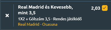 - Nyilván nagyon komoly különbség van a két gárda között, de a Real nem fogja kitömni az Osasunát! A győzelem meglesz, de 2-0, 2-1, 1-0 körüli visszafogottabb eredményt várok! A tipp: Real Madrid nyer és kevesebb, mint 3,5 gól a mérkőzésen