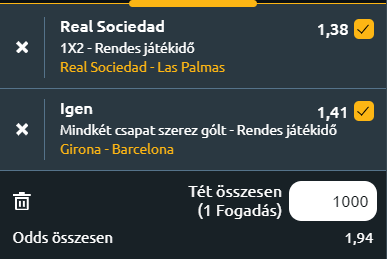 - Girona – Barcelona: A két katalán csapat találkozója idén nem lesz sima-liba, mint általában lenni szokott. A Girona káprázatos szezont futott és a Manchester City Group hálózatába tartozó alakulat várhatóan jövőre is erős lesz, ráadásul a BL-részvétel miatt is oda fognak rá figyelni a milliárdos tulajdonosok. Xavi csapata a második helyen áll a tabellán, 11 ponttal lemaradva a listavezető Real Madrid mögött, és mindössze két pontra a harmadik helyezett Girona előtt, amely így egy mai győzelem után meg is előzheti térségi riválisát. A Girona ebben a szezonban mindössze egyszer kapott ki otthon a bajnokságban, míg a Barcelona 16 idegenbeli mérkőzéséből hatot döntetlenre hozott. A gólváltás tűnik a legbiztosabbnak! RÚG-RÚG