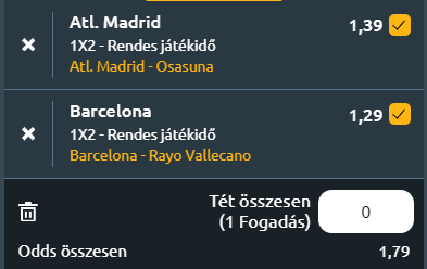 - Barcelona - Rayo Vallecano (2.-15.): A Barcelona célja, hogy bebiztosítsa az ezüstérmet, amikor ma este a Rayo Vallecanót fogadja az Estadi Olimpic Lluis Companysban a szezon utolsó előtti mérkőzésén. Xavi csapata jelenleg a második helyen áll, négy ponttal megelőzve a harmadik helyezett Gironát, míg a Rayo a 15. helyen áll, hat pontra a 18. helyen álló Cádiz előtt, és sokkal jobb gólkülönbséggel. Mindez azt jelenti, hogy a Rayo már nem esik ki, a Barcelona viszont még nem biztos, hogy másodikként végez. De mivel a Girona botladozik, nincs más dolga a Xavi-legényeknek, hogy a mai győzelemmel bebiztosítsák az ezüstöt. HAZAI