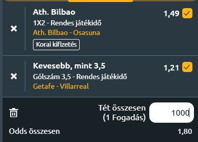 - Athletic Bilbao – Osasuna: Az Athletic Bilbao jó formában van, jelenleg a negyedik helyen áll a La Ligában, és jó esélye van a Bajnokok Ligája-indulás kiharcolására. Valverde csapata hazai pályán különösen erős, mindössze egy vereséget szenvedett el San Mamésben, és most is a kilencedik hazai győzelmére készül. Az Osasuna ezzel szemben gyenge formában van, az utóbbi időszakban nem tudott győzni a bajnokságban, legutóbb pedig a Barcelonától szenvedett súlyos, 3-0-s vereséget. Vicente Moreno csapata csupán hat ponttal van a kiesőzóna felett, így minden pontra szükségük lenne, de ezúttal egy nehéz idegenbeli meccs vár rájuk. Biztos hazai győzelemre van a legnagyobb esély! Hazai győzelem a tipp.