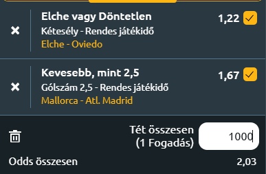 - Elche - Real Oviedo: Az Elche újonc és remekül kezdett a La Ligában! Négy forduló alatt hat pontot gyűjtöttek, amivel a tabella nyolcadik helyén állnak. A szezon elején két 1-1-es döntetlennel nyitottak a Real Betis és az Atlético Madrid ellen, majd hazai pályán 2-0-ra verték a Levantét. A legutóbbi fordulóban szintén pontot szereztek, amikor 2-2-re végeztek a Sevillával. A Real Oviedo a rájátszásból harcolta ki a feljutást, és bár szintén újonc, eddig jóval nehezebb idénykezdetet produkált. Az első fordulóban 2-0-ra kikaptak a Villarrealtól, majd 3-0-ra a Real Madridtól, a harmadik körben viszont bravúrt értek el, amikor 1-0-ra megverték a Real Sociedadot. Ezután azonban újabb kudarc következett, hiszen 2-0-ra alulmaradtak a Getaféval szemben. Így négy meccs után három ponttal a 16. helyen állnak, mindössze kettővel megelőzve az utolsó Gironát. Az Elche közelebb áll a győzelemhez, hiszen a szezon eddigi szakaszában kiegyensúlyozottabb és eredményesebb teljesítményt nyújtottak, mint a vendégcsapat. A hazaiak már több erős ellenfél ellen is bizonyították, hogy képesek pontot, sőt győzelmet szerezni, miközben a Real Oviedo csak egyszer tudott nyerni, és több kulcsjátékosuk hiányzik. Az 1X jó megoldás egy szelvényre!