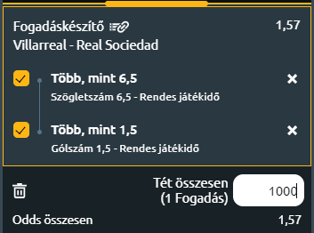 Tipp: Több mint 6,5 szöglet és több mint 1,5 gól a mérkőzésen