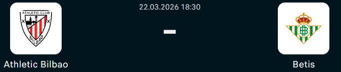 A legutóbbi öt egymás elleni bajnokin átlagosan 3,8 gól született, minden meccsen betalált mind a két csapat, és csak egyszer esett 2,5-nél kevesebb gól. A Betis az elmúlt 6 tétmeccséből egyet nyert meg, az Athletic az elmúlt négy meccsén nyeretlen, az elmúlt hármat pedig elveszítette.
