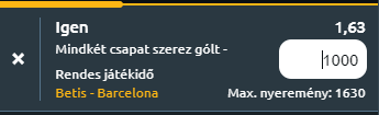 - A spanyol Szuperkupán a Real Madrid eléggé megalázta a Barcát a 4-1-es vereségre nem lehet márt mondani, viszont a Barcelona Ferran Torres, Jules Kounde és Alejandro Balde góljaival 3-1-es győzelmet aratott a Copa del Reyben az Unionistas ellen. A nyomás ellenére a Barcelona jelenleg a negyedik helyen áll a La Ligában, pontegyenlőségben a harmadik helyezett Athletic Bilbaóval. A bajnoki címért a Real Madrid az elsődleges esélyes, hét pont az előnye. A Barcelona sérülés miatt nélkülözi Marcos Alonsót, Gavit, Inigo Martinezt, Raphinát és Marc-Andre ter Stegent. A Betis nem fogja otthon feladni, nekimegy a Barcának és megpróbál fogást találni rajta. Ez pedig gólváltáshoz vezet, hiszen a gránátvörös-kékek biztosan vernek gólt!