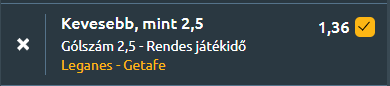- A Leganes számára a bennmaradás a legfőbb cél, és az utóbbi időben gyenge formát mutatnak. Hat mérkőzés óta nyeretlenek, öt bajnokijukból pedig mindössze két pontot szereztek. Legutóbb 3-0-ra kaptak ki a Real Sociedad ellen, és bár hazai pályán összességében nem teljesítenek rosszul, mindössze 14 pontot gyűjtöttek 12 meccsükön. A Getafe szintén 14 pontot szerzett idegenben, és erős védelmükre építenek, hiszen 25 mérkőzésen csupán 20 gólt kaptak, ami a második legjobb mutató a ligában. Ugyanakkor támadásban rendkívül gyengék, hiszen 21 találattal az egyik legrosszabb csapatnak számítanak ebben a tekintetben. A két csapat korábbi összecsapásai is kiegyenlítettek voltak, az idény elején 1-1-re végeztek egymással. Mivel mindkét együttes óvatos, defenzív játékot játszik, várhatóan kevés helyzet alakul ki, és egyik fél sem tudja dominálni a mérkőzést. Kevesebb, mint 2,5 gól várható!